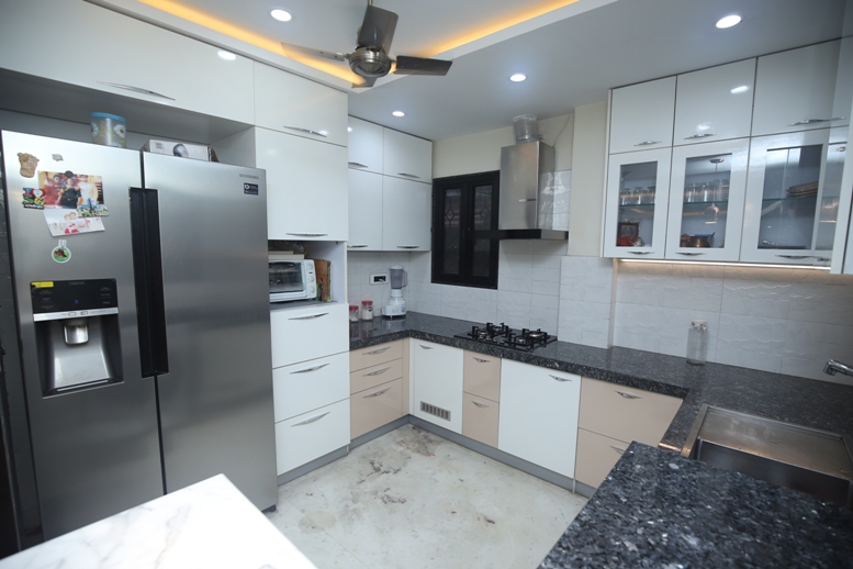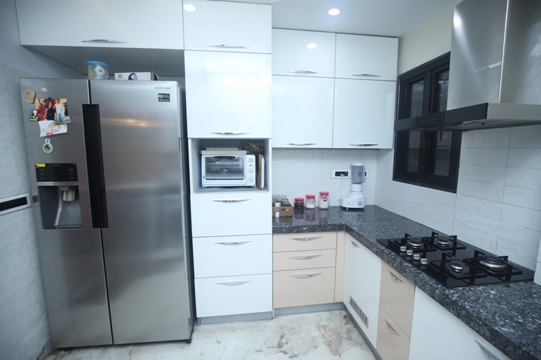 L shaped kitchen is ideal for small family homes with small floor space. Two walls are utilized in L-shape for counter tops, cabinets and appliances.